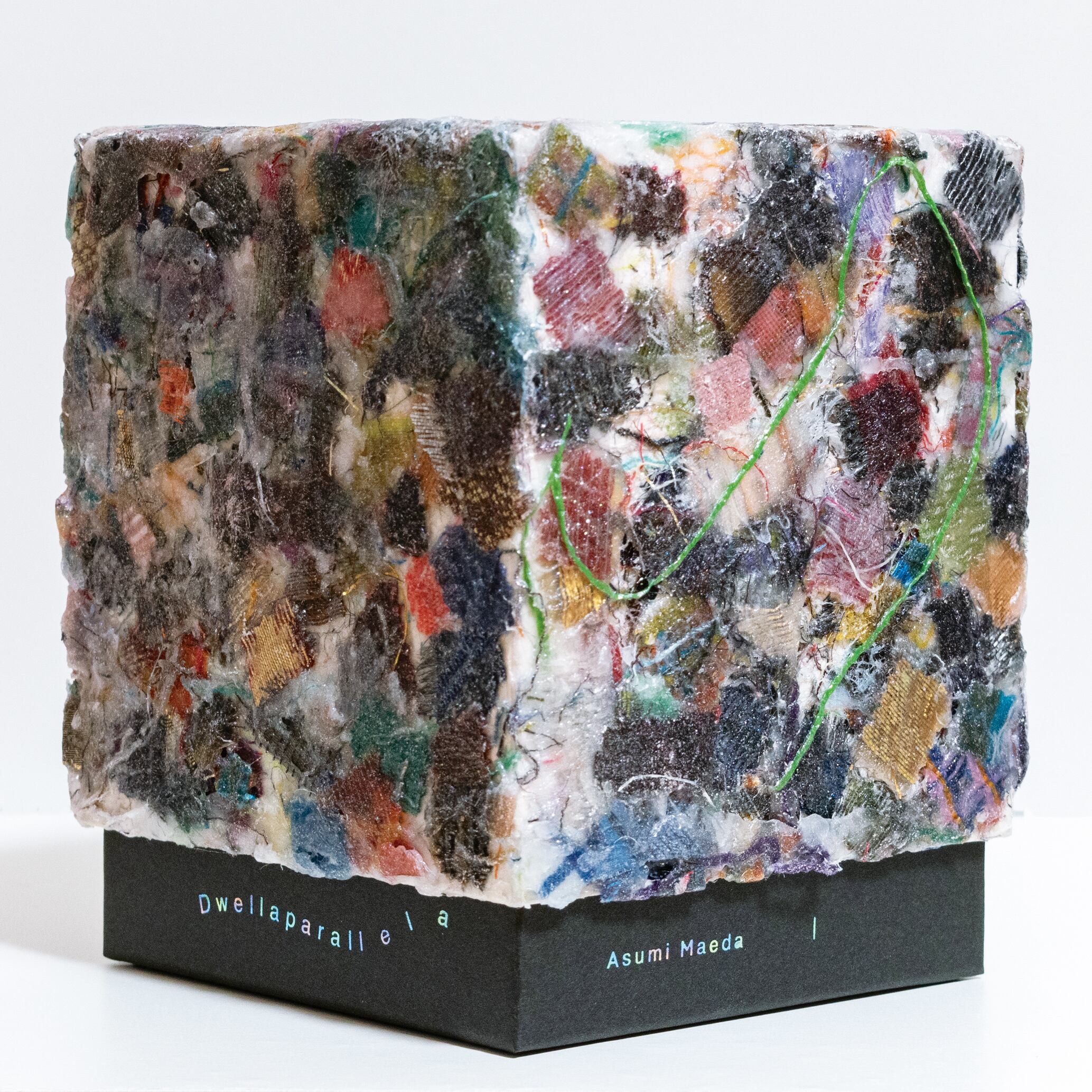 フタのテクスチャーには、作品制作の過程で出た布の切れ端を使用して、1点ずつ手作業で加工しています。