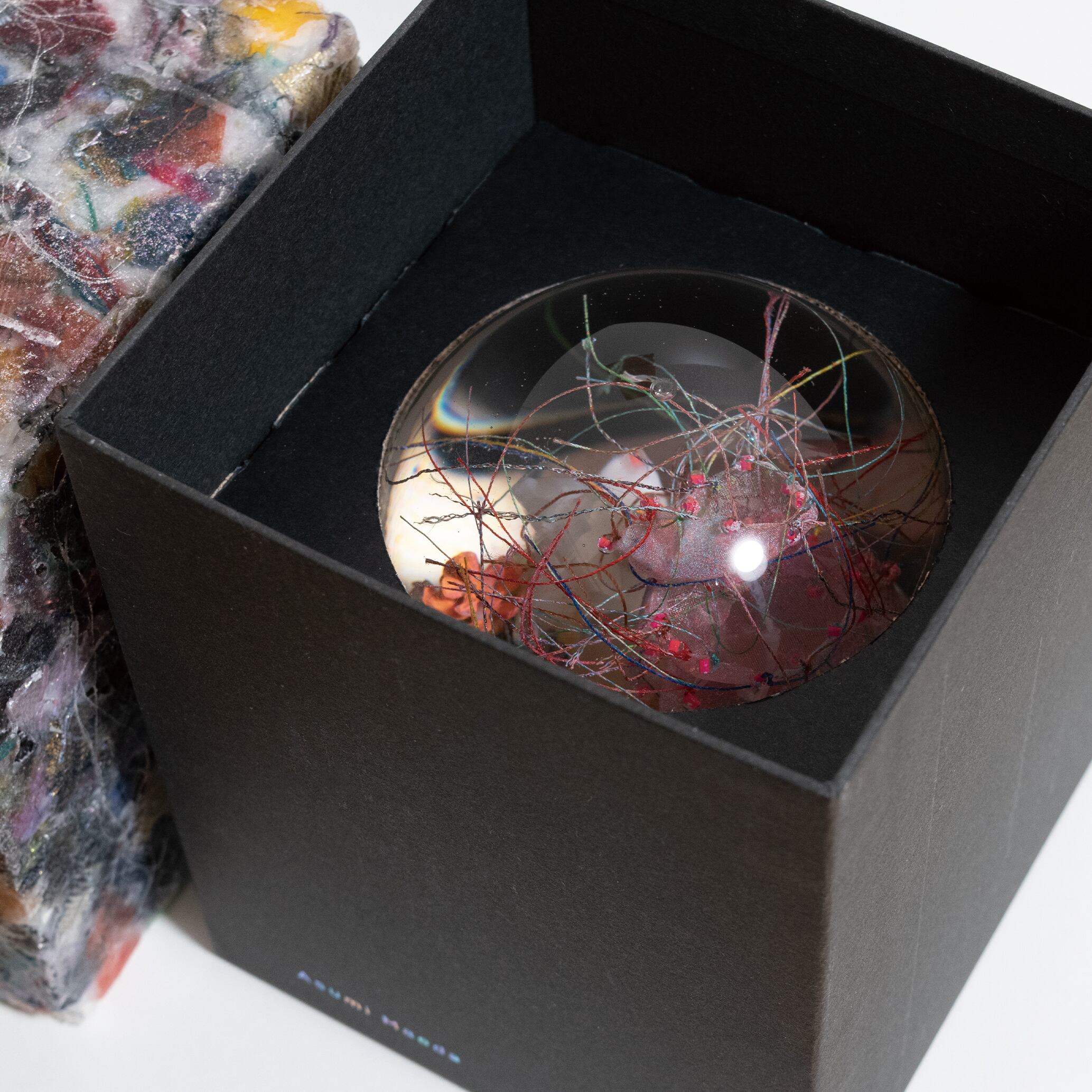 フタのテクスチャーには、作品制作の過程で出た布の切れ端を使用して、1点ずつ手作業で加工しています。